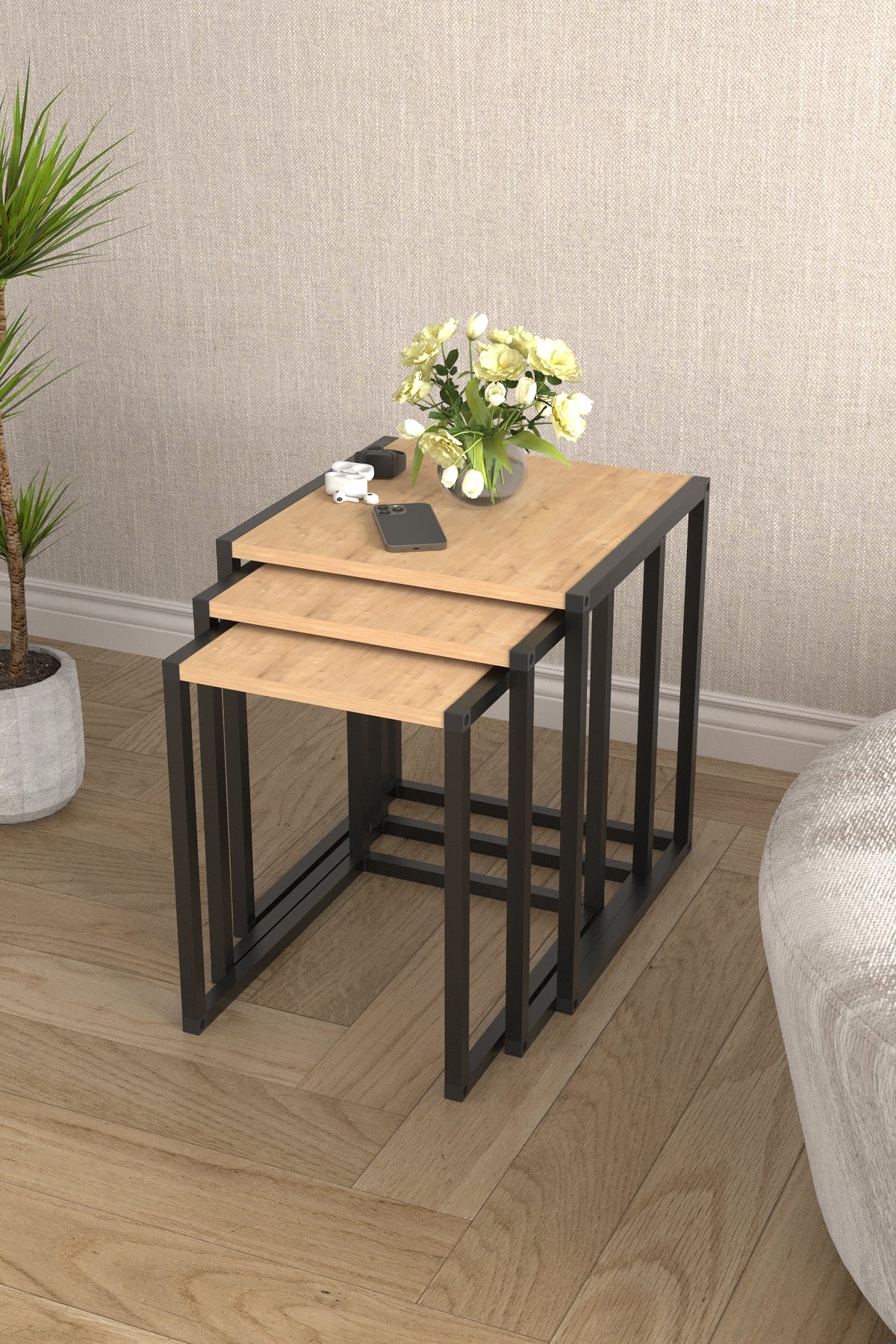 Redefinește zona de relaxare din livingul tău cu acest set de măsuțe de cafea pătrate! Design contemporan, linii curate și versatilitate maximă - soluția perfectă pentru un living modern și elegant.