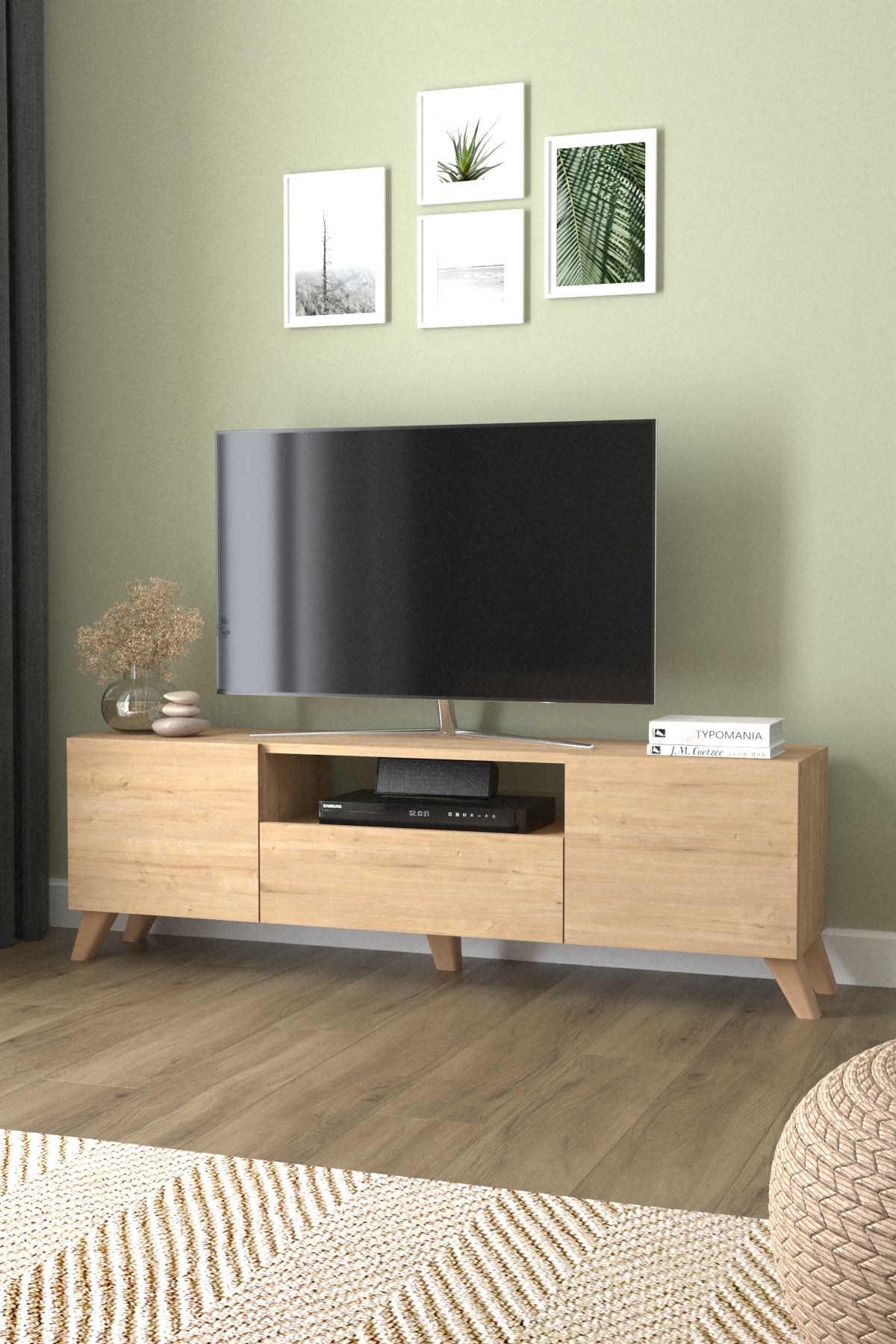 Descoperă soluția perfectă de depozitare și organizare pentru zona ta de entertainment! Această unitate TV cu 3 uși combină funcționalitatea cu designul modern, oferindu-ți spațiul necesar pentru toate dispozitivele și accesoriile tale.